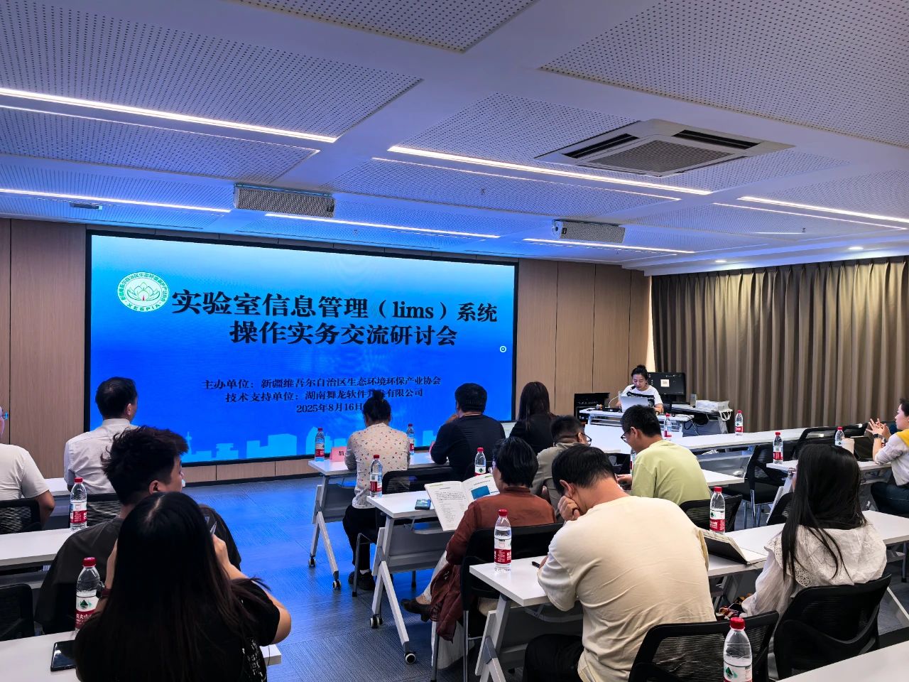 2025年8月16日,由新疆維吾爾自治區(qū)生態(tài)環(huán)境保護產(chǎn)業(yè)協(xié)會(以下簡稱 “協(xié)會”)主辦,湖南舞龍軟件開發(fā)有限公司提供專業(yè)技術支持的實驗室信息管理系統(tǒng)(LIMS)系統(tǒng)的操作實務研討會,以“線上和線下”結合形式順利舉辦。本次研討會吸引全疆各地會員單位參與,其中線上參會達 350余人次,線下參會35人,與會人員共同聚焦LIMS系統(tǒng)應用為新疆生態(tài)環(huán)境保護產(chǎn)業(yè)